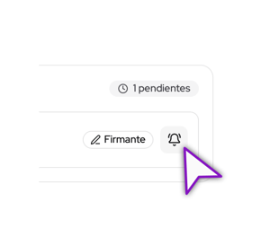 3. Envía el recordatorio. En el panel de estado de los firmantes, busca a la persona que aparece como 'Pendiente'. Junto a su nombre, haz clic en el botón  de la campana o “Enviar recordatorio”.