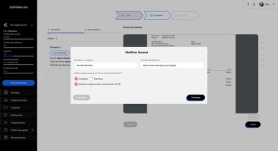 Recuerda que puedes activar o desactivar la solicitud de prueba de vida por firmante, antes de enviar el documento a firma