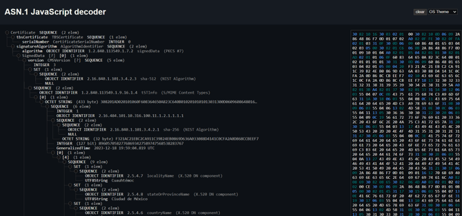 - Sube el archivo ASN.1 en este link: https://lapo.it/asn1js/
